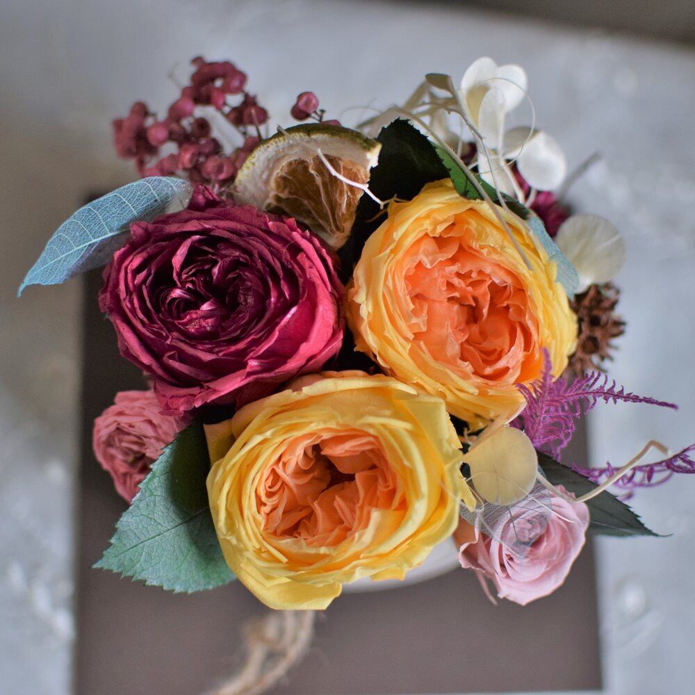 ・プリザーブドフラワーは生花を加工していますので大きさや形が異なります。また乾燥により花びらにひび割れが生じる場合がありますのでご了承ください。